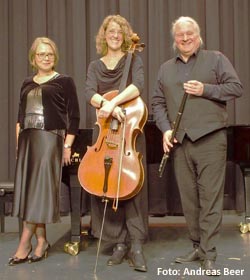 Pfingstsonntag, 24.5.2026, 17 Uhr trio con brio - Viva Verdi! Ein Nachmittag in der italienischen Oper Das Ensemble trio con brio spielt unter dem Motto Viva Verdi! ein Programm mit Salonpotpourris für Flöte, Violoncello und Klavier nach Themen italienischer Opern. Neben Melodien von Giuseppe Verdi, stehen Werke von Vincenzo Bellini, Gaetano Donizetti und Gioachino Rossini auf dem Programm. Wir besuchen den berühmten Frisör in Sevilla, trinken auf die Liebe, mixen mit gallischen Druiden Zaubertränke, alles mit wunderschöner, schwungvoller Musik und garantiert ohne Gesang. Es spielen: Inessa Tsepkova – Klavier, Anna Silke Reichwein – Violoncello und Martin Karl-Wagner – Flöte. Karten 24 € |